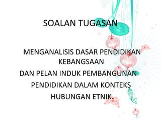 Kepada perpaduan dan menjadi tunjang Dasar Pendidikan Kebangsaan Hussin 2018. View TASK 2 Dasar Pendidikan Kebangsaanpdf from EDUP 3083 at IPG Kampus Bahasa Melayu. Check more flip ebooks.